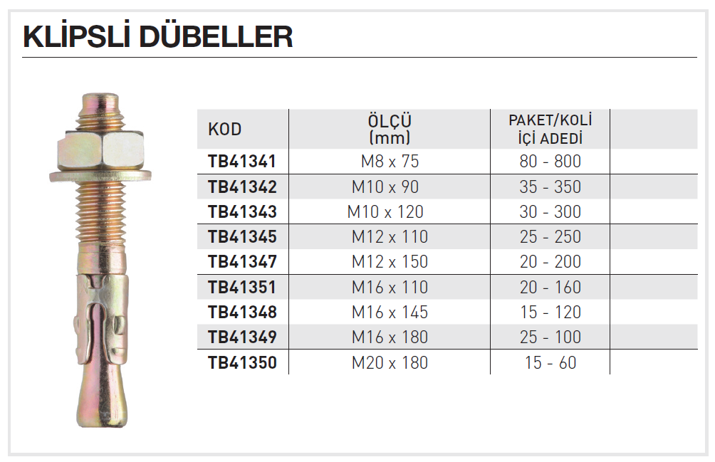 414 TB41303 M10x12x40 Çakmalı Dübel