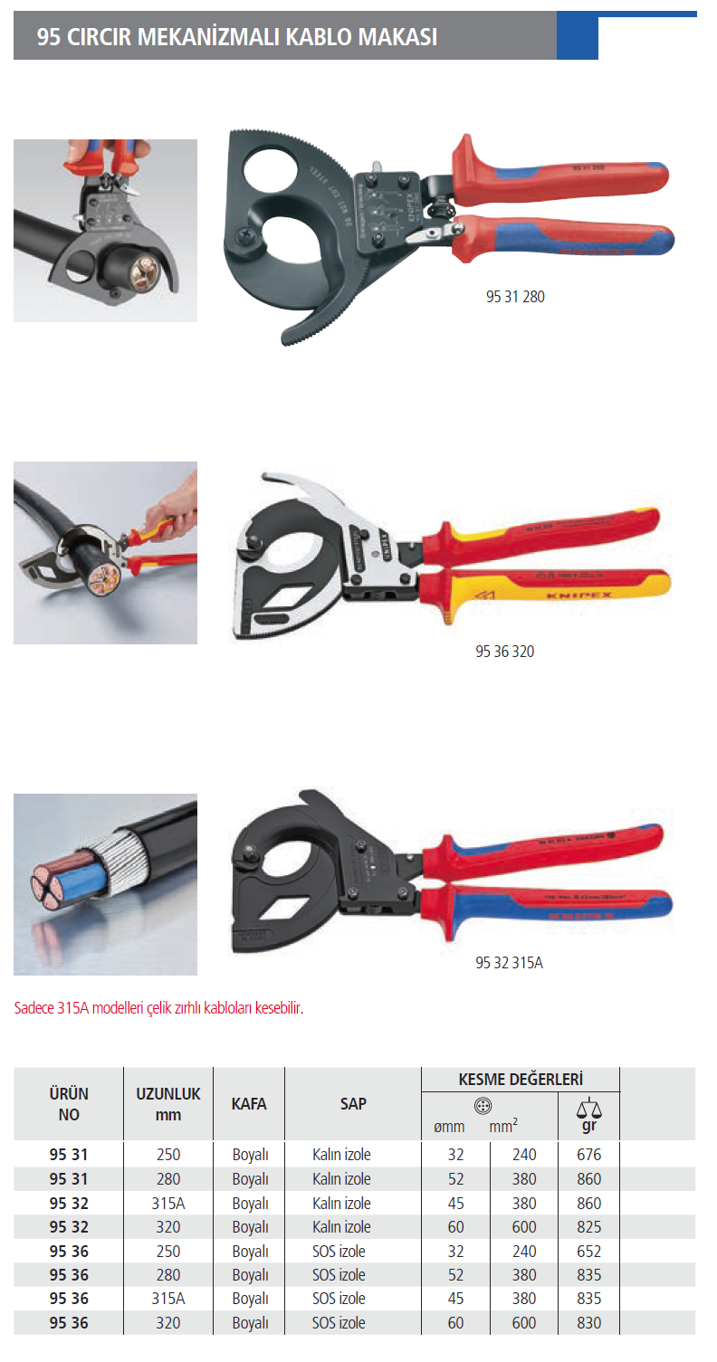 Knipex 95 36 320mm Cırcır Mekanizmalı Kablo Makası VDE