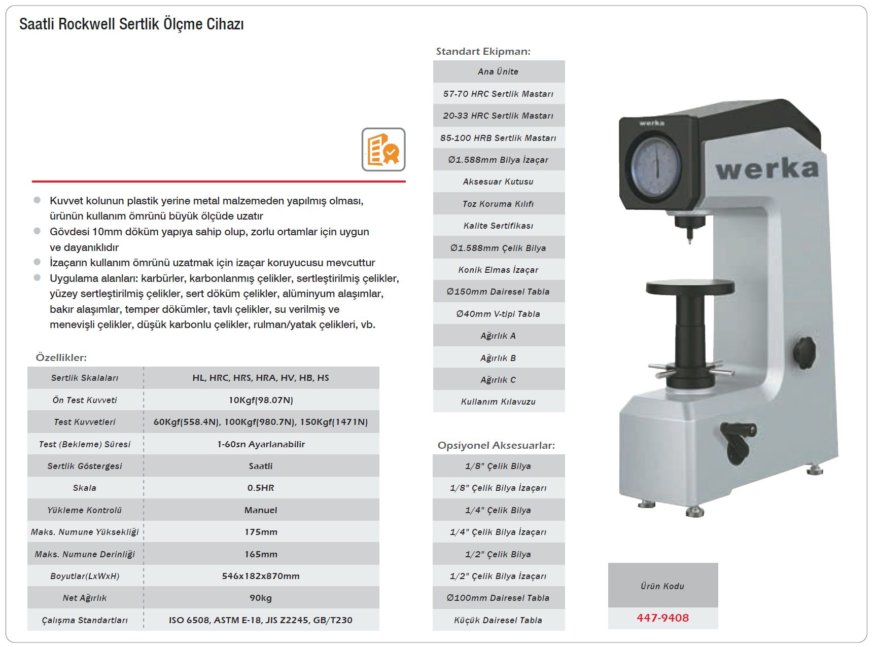 Werka 447-9408 Saatli Rockwell Sertlik Ölçme Cihazı