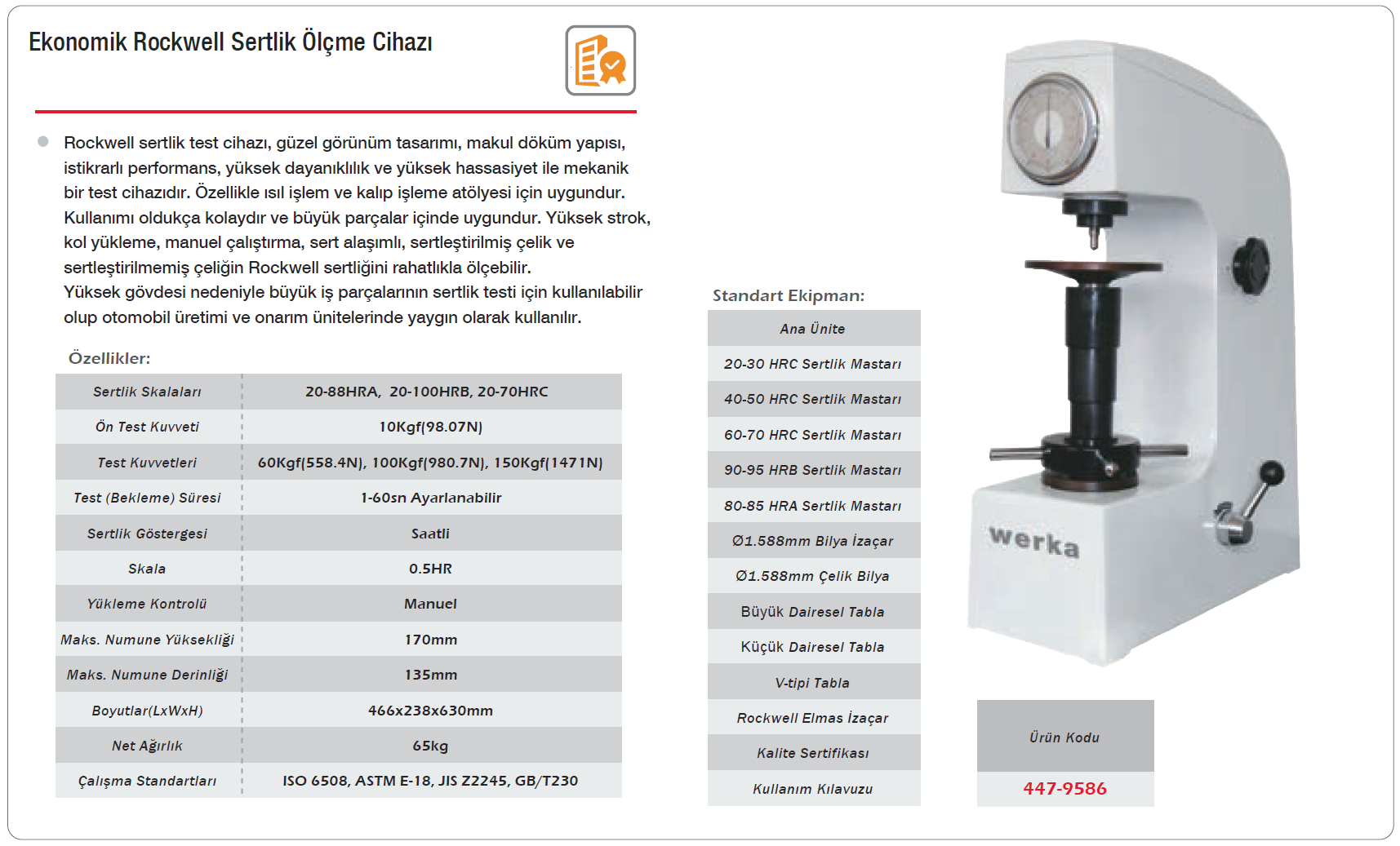 Werka 447-9586 Ekonomik Rockwell Sertlik Ölçme Cihazı